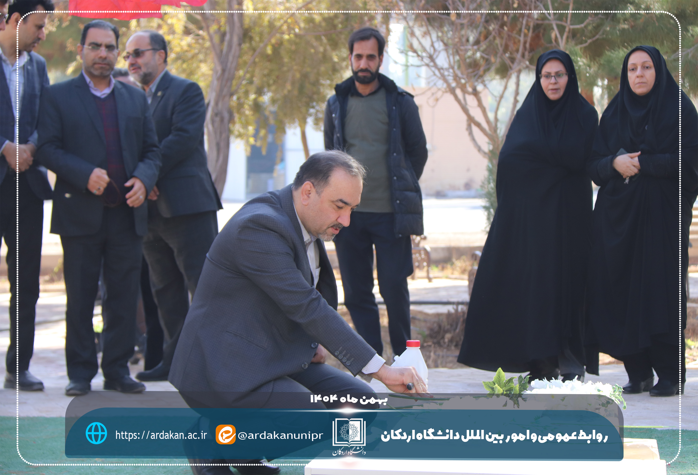 به گزارش روابط عمومی و امور بینالملل دانشگاه اردکان، در این مراسم ابتدا مرقد مطهر شهید گمنام دانشگاه با گلاب شستوشو داده شد و سپس با اهدای گل گلباران شد.
