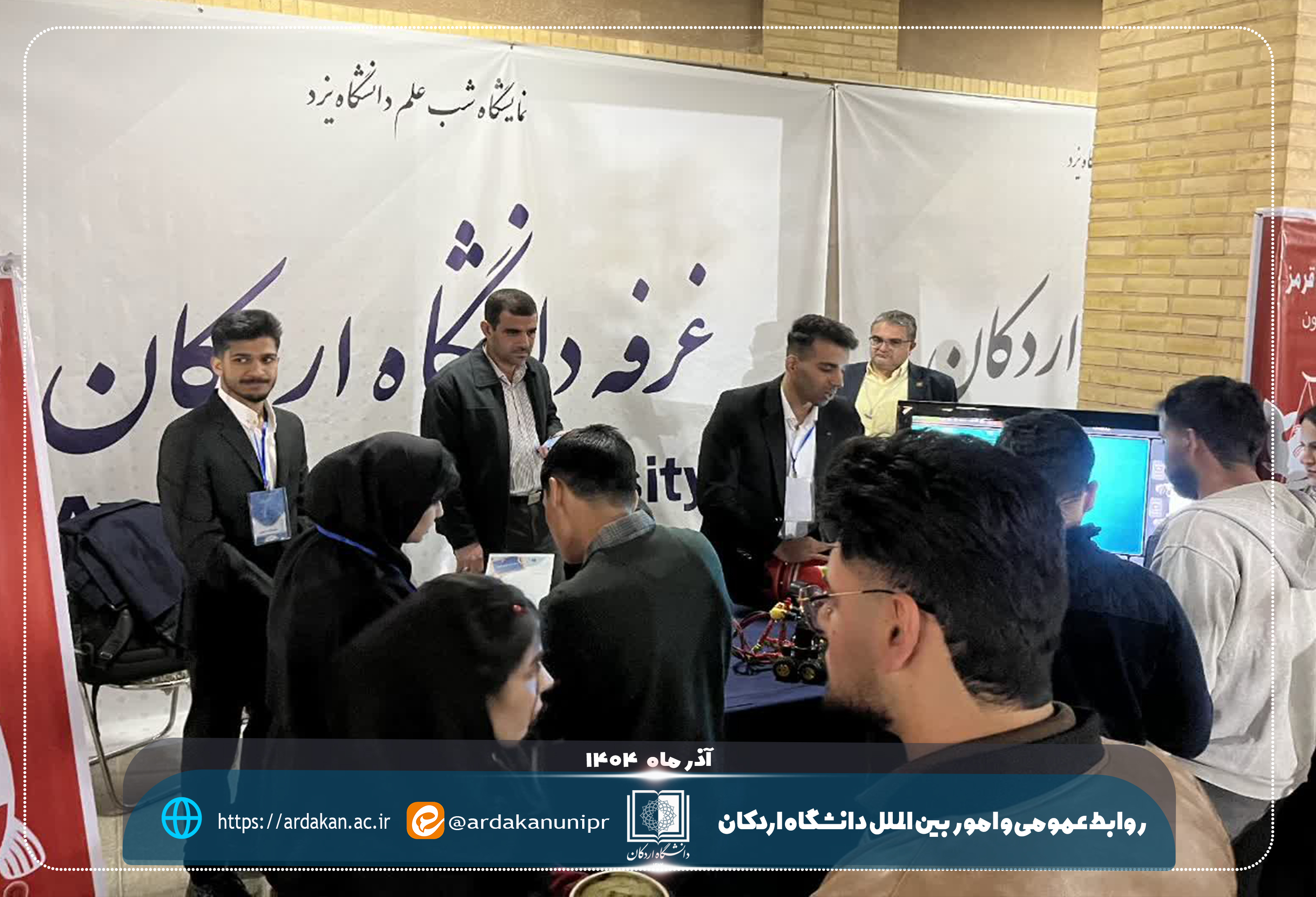 در این آیین علمی و پژوهشی که با حضور دانشگاه‌ها و مجموعه‌های علمی استان یزد برگزار شد، غرفه دانشگاه اردکان با استقبال خوب و پرشور بازدیدکنندگان روبه‌رو شد و مورد توجه اقشار مختلف جامعه قرار گرفت. بازدیدکنندگان، از نزدیک با دستاوردها، ایده‌ها و پروژه‌های اجرایی‌شده توسط دانشجویان دانشگاه اردکان آشنا شدند.